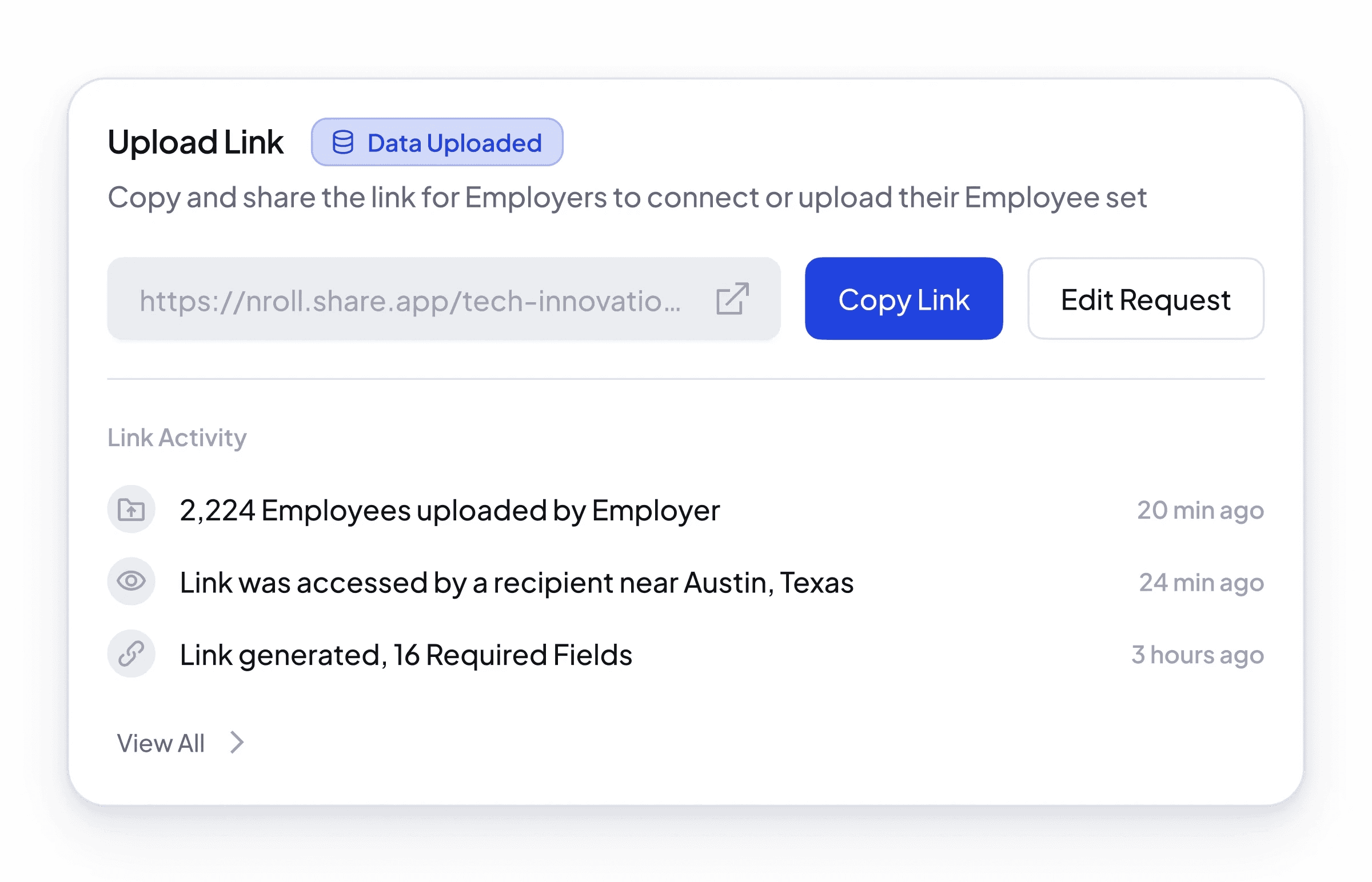 With NRoll, you can gather complete, accurate census data directly from your prospect’s payroll system — automatically.